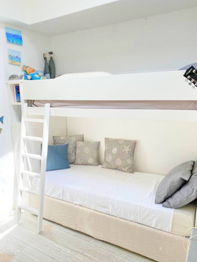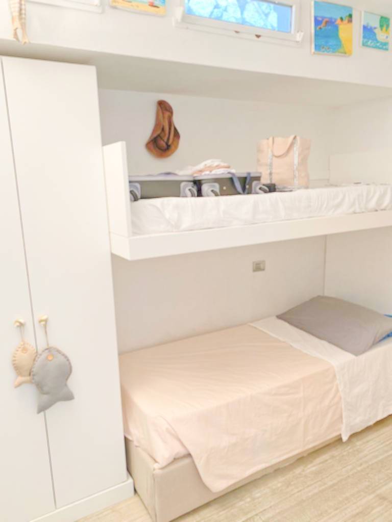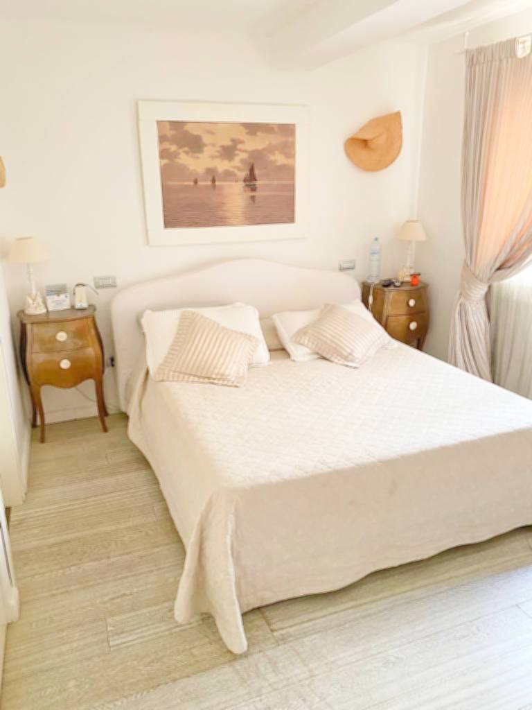 Capo schiera su un unico livello con vista sul mare immerso nel condominio Marina Piccola, a pochi passi dalla spiaggia. La proprietà è composta da un soggiorno con zona pranzo, cucinotto, una camera da letto matrimoniale e due camere da letto doppie a castello. Ampia veranda arredata, giardino privato e box auto. Amenities: quote di accesso del beach club di Marina Piccola, spiaggia privata ed attrezzata con ombrelloni e lettini prendisole, piscina e pontile attracco natanti.